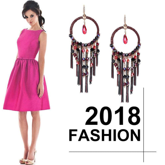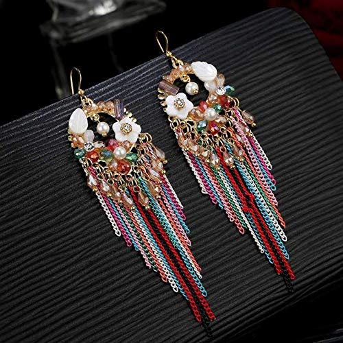 Exclusive Designer Luxurious Limited Edition Sparkling Colors Onyx Pearl Crystal Chain Dangle Tassel Earrings For Women