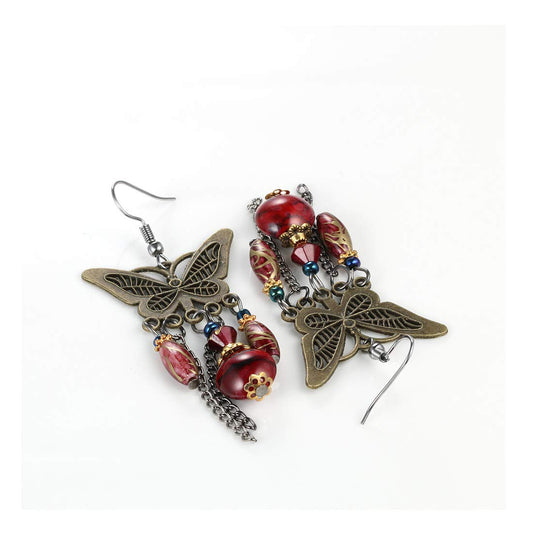 Butterfly & Dangles Red Silver Earring for Women & Girls