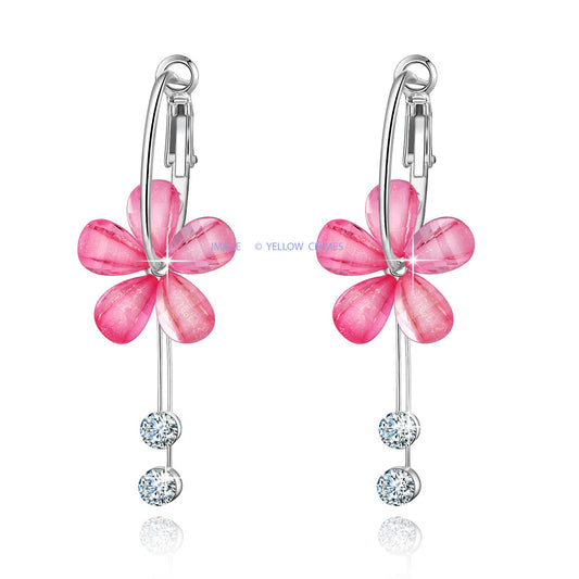 Moxie Collection Designer Flower Style Combo of 2 Pairs Floral Hoop Earrings for Women & Girls (Pink and White)