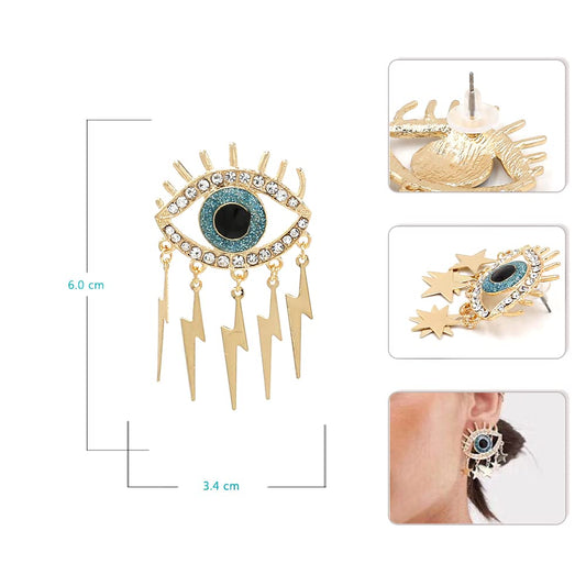 Earrings For Women Gold Toned Evil Eye Designed Charm Hanging Mismatched Earrings For Women and Girls