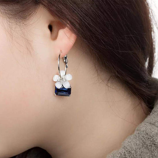 Elegant A Grade Crystal Flower Dangle Hoop Drop Earrings For Women and Girl's