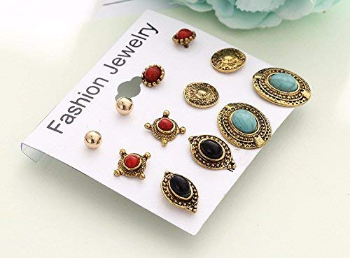 6 Assorted Pairs Afghani Studs Combo Set Golden Oxidized Stylish Studs Earrings for Women & Girls