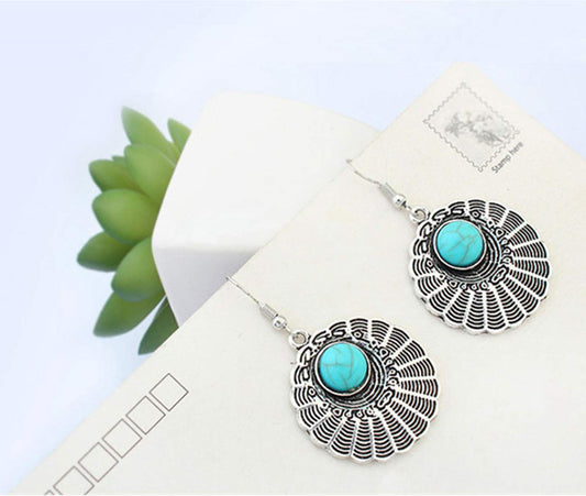 Oxidized Silver Turquoise Metal Dangle Earring for Women and Girls