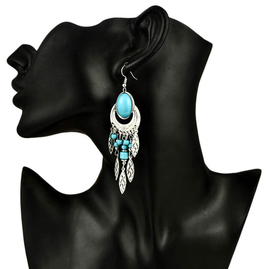 Fancy party ware Bohemian Turquoise Alloy Drop Earring for Women and Girls