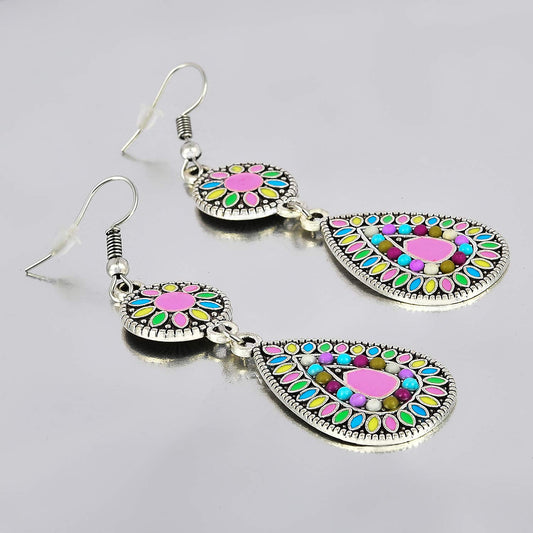 Floral Design Multicolor Chandelier Dangle Drop Earrings for Women and Girls
