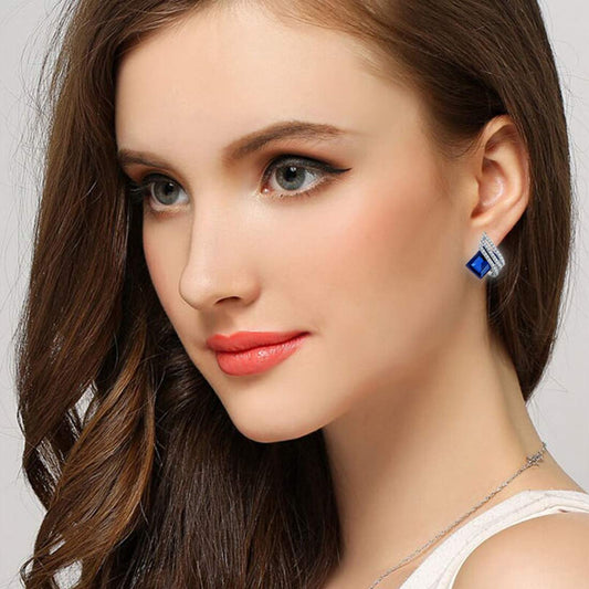 Blue Crystal Latest Platinum Plated Earrings For Women