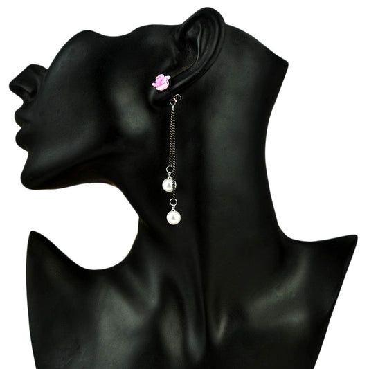 Fancy Party ware Rose Pearl Acrylic Dangle Earring for Women and Girls