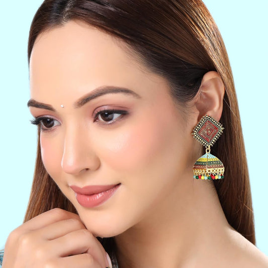 Earrings for Women and Girls Traditional Multicolor Jhumka Earrings Oxidised Gold Plated 2 Pairs Combo Big Jhumka Jhumki Earrings for women | Birthday Gift For Girls & Women