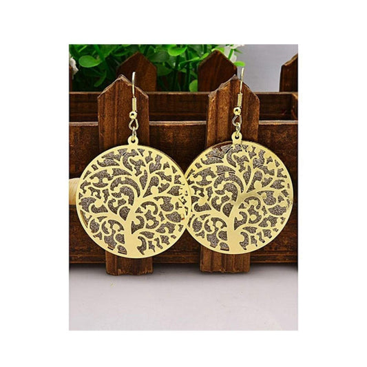 Engraved Tree of Life Round Beautiful Dangle Earrings For Women and Girl's