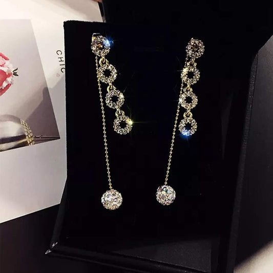 Classic Crystal Studded Geometric Circle Shaped Gold Plated Long Dangle Earring For Women and Girl's