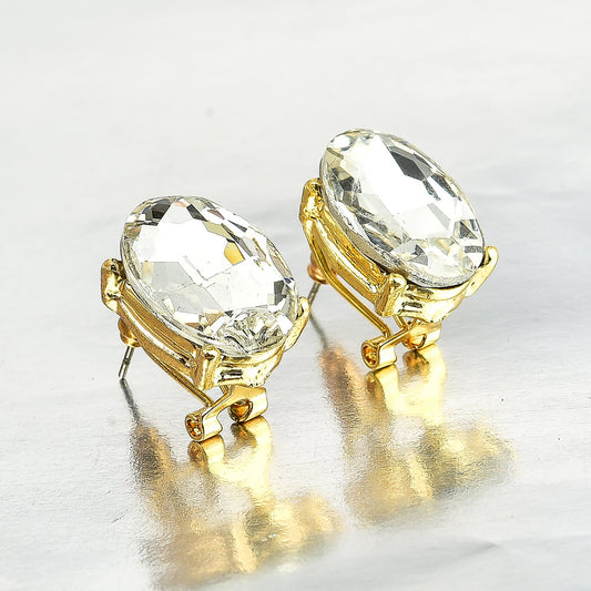 YELLOW CHIMES A5 High Grade Crystal Elements White Sparkling Crystal Golden Studs Earrings for Women & Girls