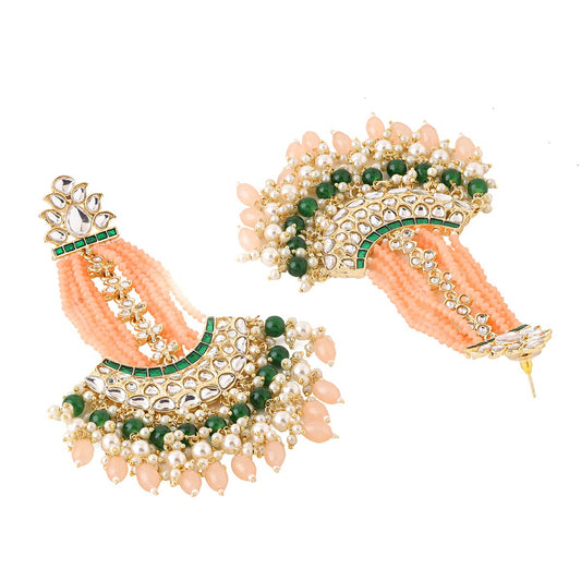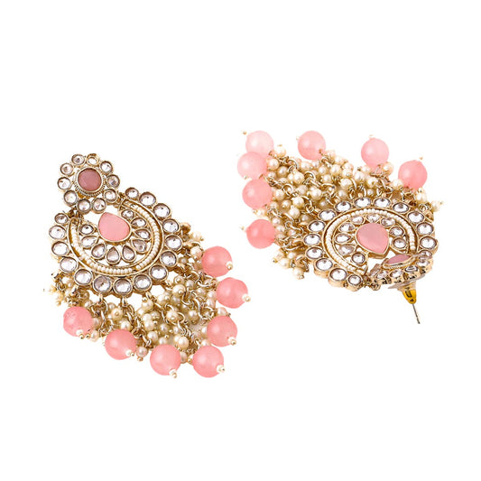 Earrings for Women Gold Toned Kundan Studded Green and Pink Beads Drop Chandbali Earrings for Women and Girls