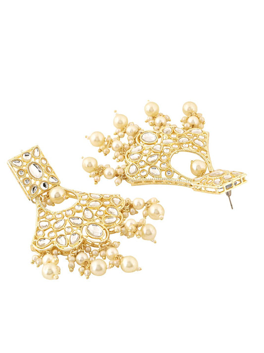 Earrings for Women Gold Toned Kundan Studded Pearl Drop Dangler Earrings for Women and Girls