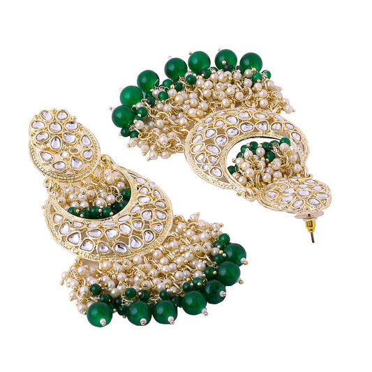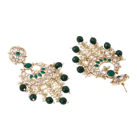 Earrings for Women and Girls Traditional Kundan Chandbali | Gold Plated Kundan Studded Green Beads Drop Chandbali Earrings | Birthday Gift for girls and women Anniversary Gift for Wife