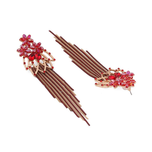 Crystal Danglers Earrings for Women Floral Shaped Crystal Red Long Chain Dangler Earrings for Women and Girls