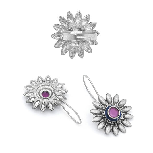Earrings for Women and Girls Silver Oxidised Earrings | Silver Oxidised Earrings & Ring Combo | Birthday Gift For girls and women Anniversary Gift for Wife
