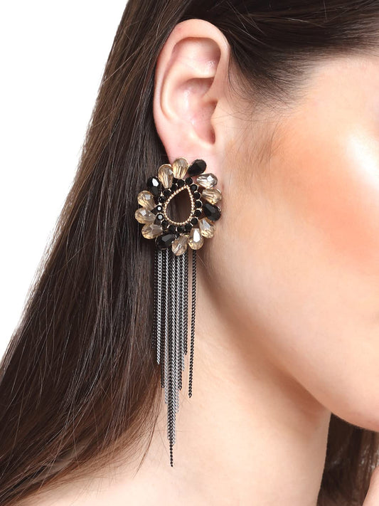 Crystal Danglers Earrings for Women Floral Shaped Crystal Black Long Chain Dangler Earrings for Women and Girls