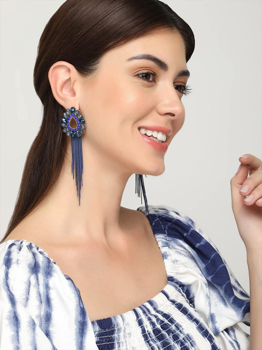 Crystal Danglers Earrings for Women Tear Drop Shaped Crystal Blue Long Chain Dangler Earrings for Women and Girls
