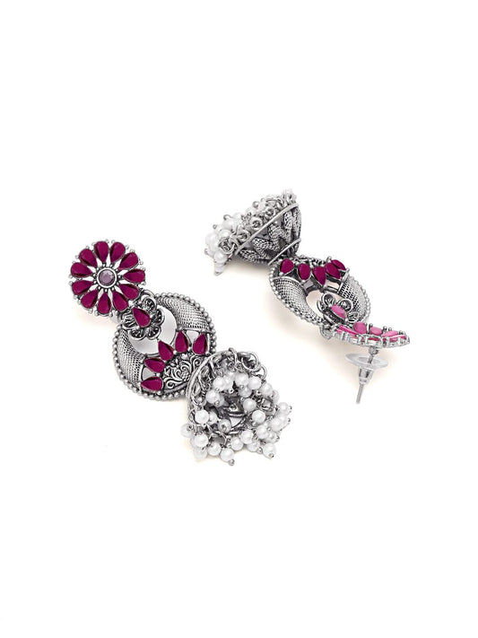 Earrings for Women Multicolor stone studded Silver Oxidised Beads Drop Geometric Designed Dangler Drop Earrings for Women and Girls (ER 1)