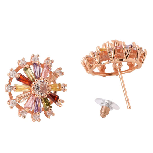 Drop Earrings for Women Multicolor Swiss Zircon Rose Gold Plated Floral Shaped Drop Earrings for Women and Girls