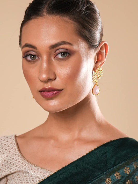 Drop Earrings for Women Traditional Gold Plated Studded Pink Stone Ethnic Floral Shaped Drop Earrings for Women and Girls