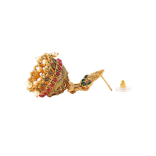 Earrings For Women Gold Tone Crystal Studded Pearl Drop Hanging Traditional Jhumka Earrings For Women and Girls