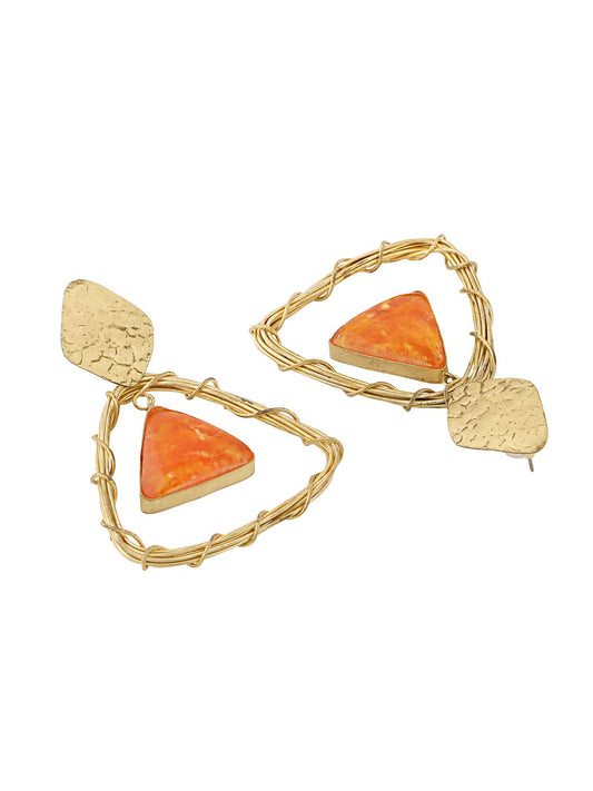 Earrings for Women and Girls | Orange Drop Earring | Gold Plated Drop | Triangular Orange Stone Drop Western Drop Earrings | Accessories Jewellery for Women | Birthday Gift for Girls and Women Anniversary Gift for Wife