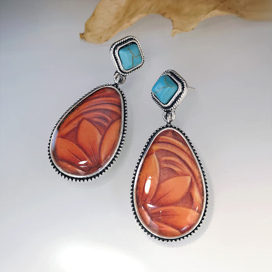 Earrings For Women Silver Toned Blue and Orange Stone Studded Tear Drop Shaped Earrings For Women and Girls