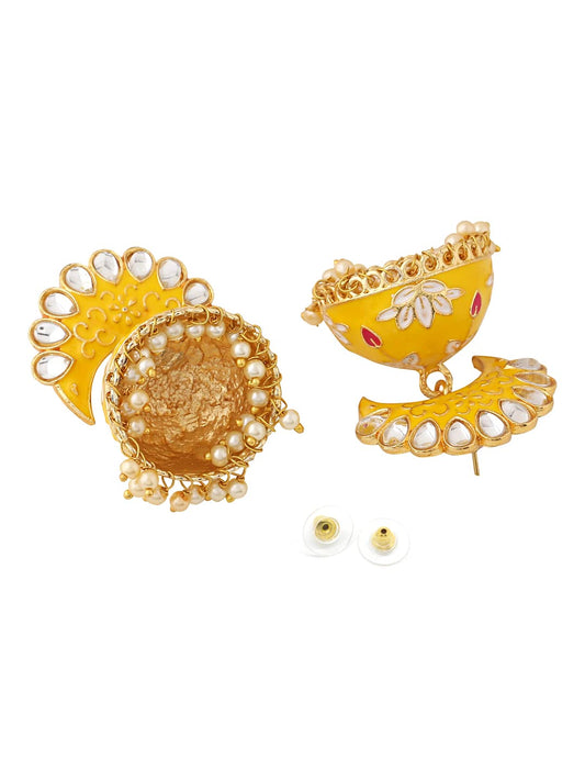 Earrings For Women Bright Yellow Color Pearl and Stone Studded Meenakari Jhumka Earrings For Women and Girls