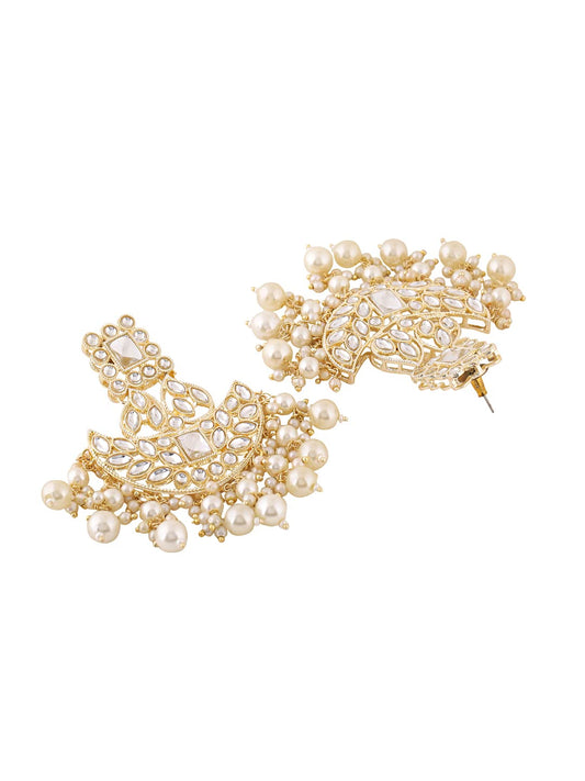 Earrings for Women Gold Toned Kundan Studded Pearl Drop Dangler Earrings for Women and Girls