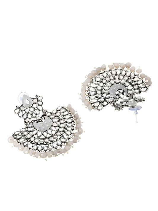 Earrings For Women Long Chandbali Grey Pearl and Stone Studded Elegant Earrings For Women and Girls