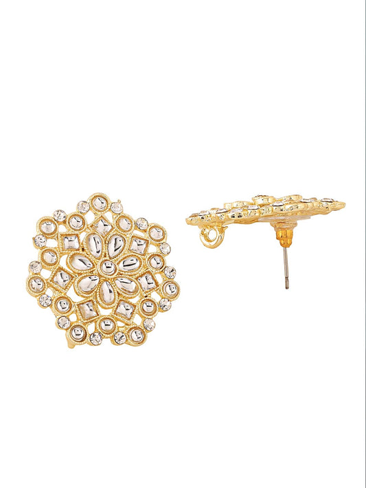 Earrings for Women Gold Toned Kundan Studded Set of 2 Pairs Stud Earrings for Women and Girls