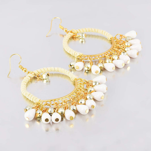 Ethnic Fusion Resin Leather White Chandbali Earring for Women & Girls