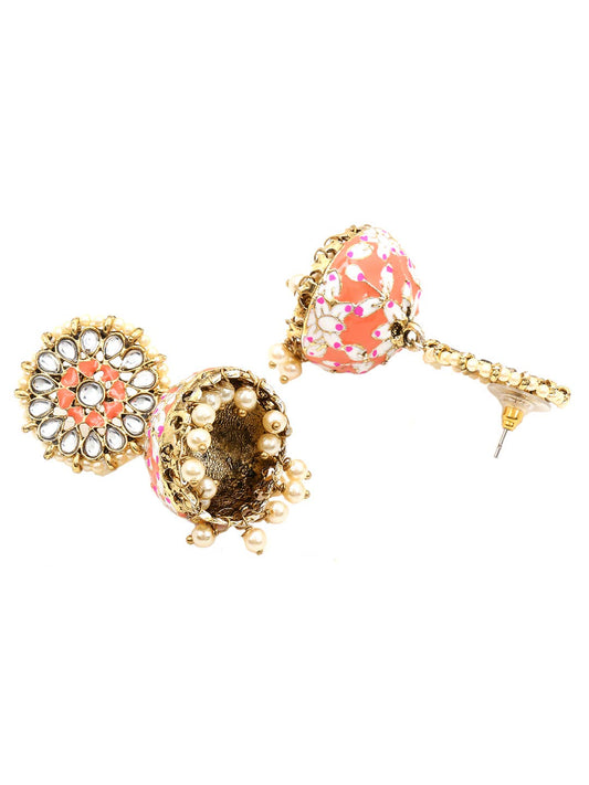 Peach Gold toned Gold-plated & Enamel Base Metal Meenakari Jhumka Earrings Handcrafted Traditional Pastel Jhumka/Jhumki Earrings for Women and Girls
