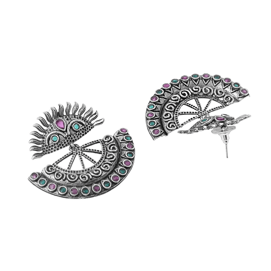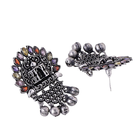 Earrings for Women Silver Oxidised Stone Studded Face Designed Drop Earrings for Women and Girls