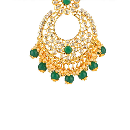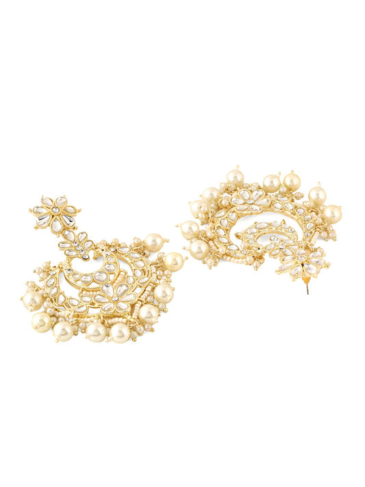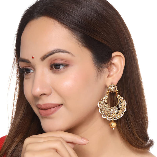 Earrings for Women Gold Toned Kundan Studded Pearl Drop Chandbali Designed Drop Earrings for Women and Girls