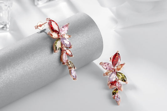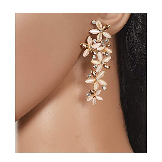 Danglers Earrings for Women Floral Design Gold Plated Opal Crystal Dangle Earrings For Women and Girls.