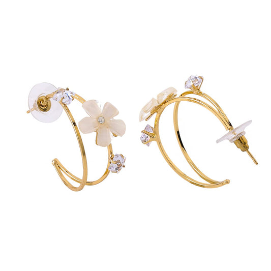 Earrings For Women Gold Tone Double Hoop With Flower Embellished Drop Earrings For Women and Girls