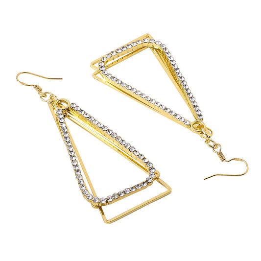 Earrings For Women Gold Tone Dual Triangle Crystal Studded Triangular Layered Drop Earrings For Women and Girls