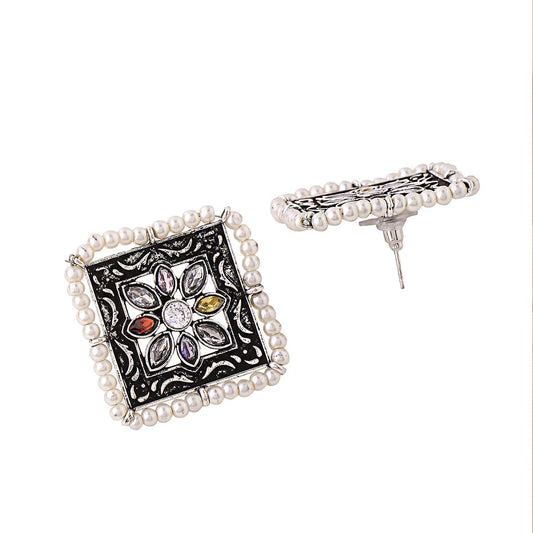 Earrings for Women and Girls Traditional Silver Oxidised Studs|German Silver Square Shaped Stud Earrings|Birthday Gift For girls and women Anniversary Gift for Wife