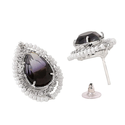 Earrings for Women and Girls Black Crystal Studs | Silver Toned Tear Drop Stud Earrings | Birthday Gift for girls and women Anniversary Gift for Wife
