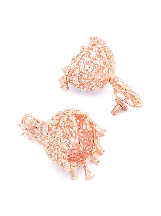 American Diamond Earrings for Women Rosegold Plated High Grade Authentic White AD Studded Jhumka/Jhumki Earrings for Women and Girls.