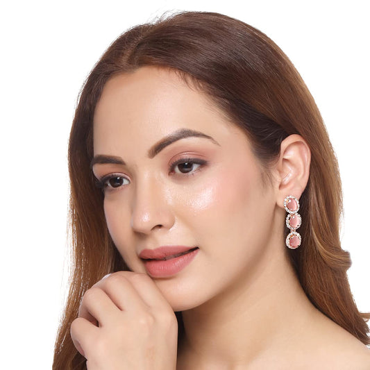 Earrings for Women and Girls Pink Crystal Drop Earrings | Rose Gold Toned Drop Earrings | Birthday Gift for girls and women Anniversary Gift for Wife