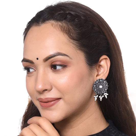Earrings for Women Silver Oxidised White Beads Drop Designed Jhumka Earrings for Women and Girls