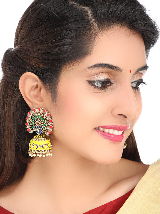 Jhumka Earrings for Women Ethnic Gold Plated Traditional Multicolour Meenakari Peacock Design Jhumka Earrings for Women and Girls
