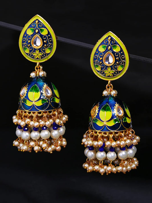 Jhumka Earrings for Women Ethnic Gold Plated Traditional Moti Beads Silk Blue Meenakari Jhumka Earrings for Women and Girls