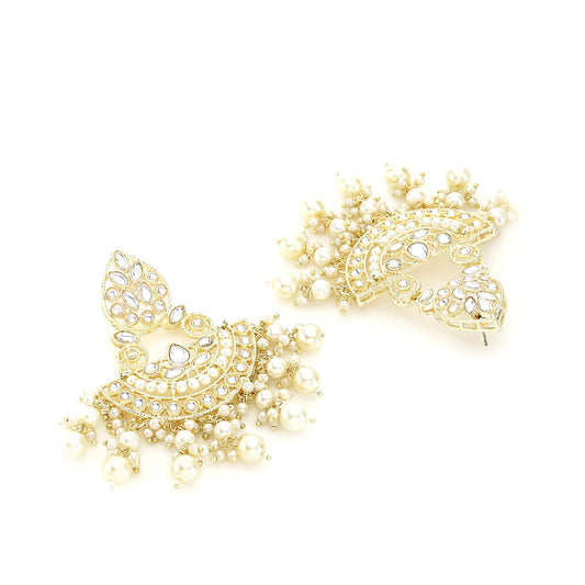 Earrings for Women Gold Toned Kundan Studded Pearl Drop Chandbali Designed Drop Earrings for Women and Girls (ER-12)