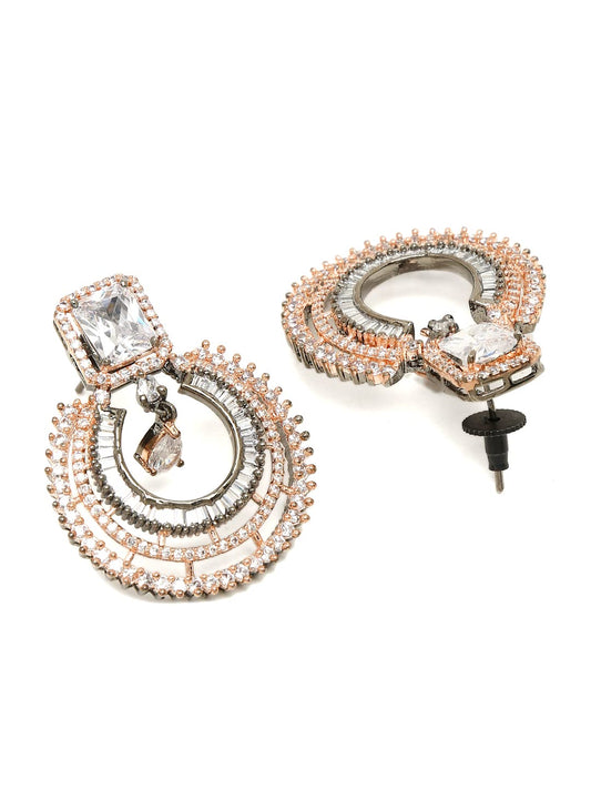 Earrings for Women American Diamond Earrings Rhodium-Plated RoseGold White AD-Studded Drop Earrings for Women and Girls