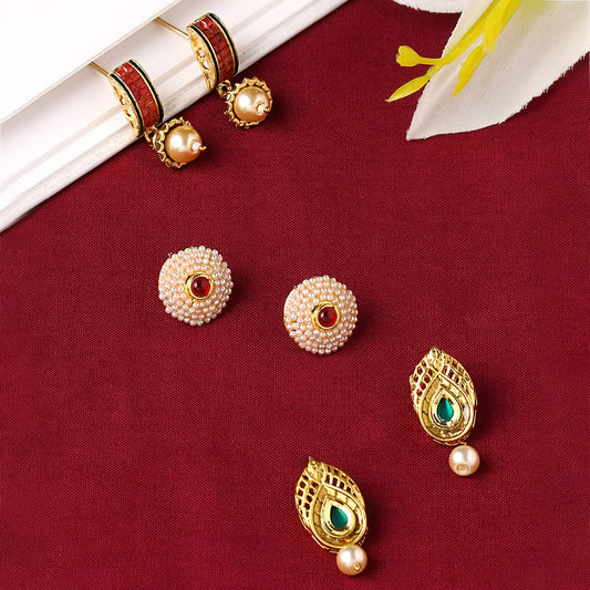 Earrings for Women and Girls Pearl Stud Earrings | Gold Plated 3 Pairs Combo of Pearl Earrings | Birthday Gift for girls and women Anniversary Gift for Wife