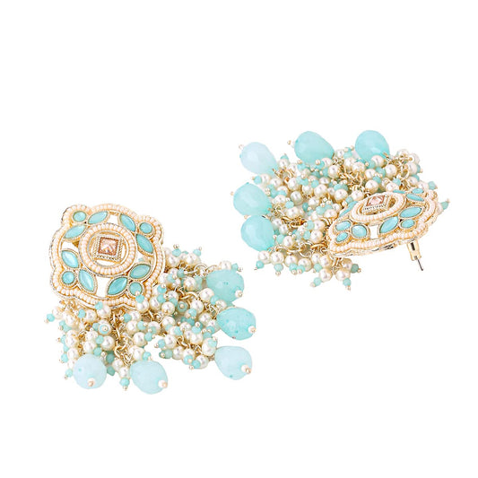 Earrings for Women and Girls Traditional Blue Beads Drop Earrings | Gold Plated Beads & Stone Drop Earrings | Birthday Gift for girls and women Anniversary Gift for Wife